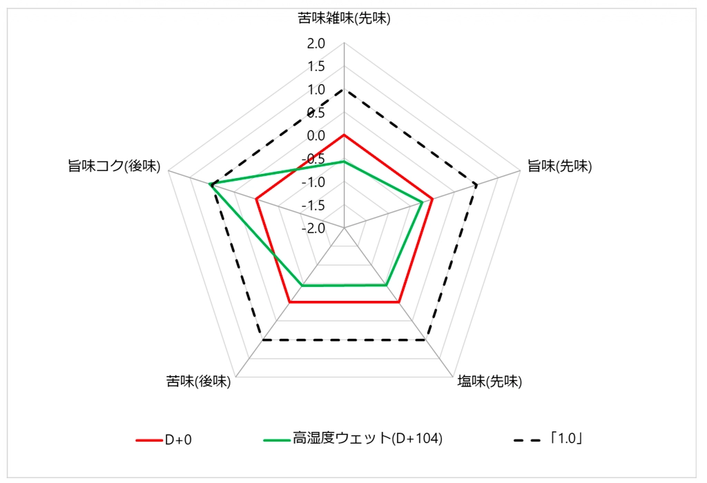 - 旨味コク(後味): 未処理に比べ「1.06」上昇しました。