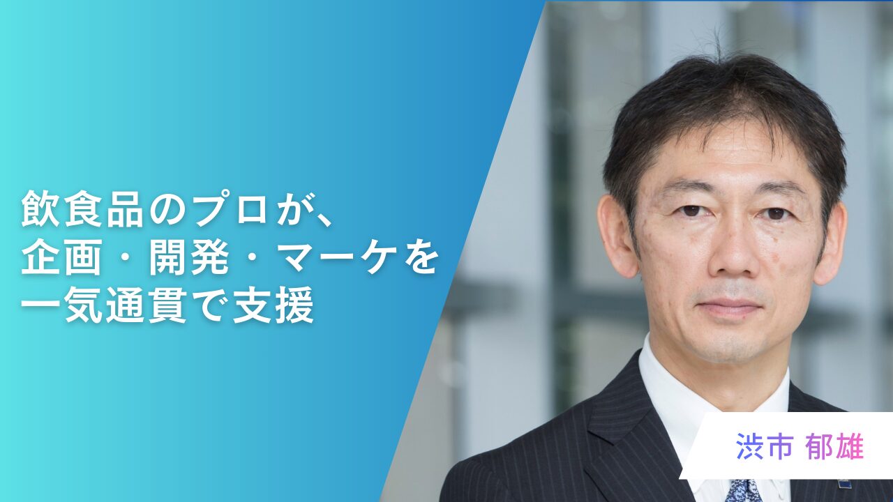 代表の渋市はアサヒビール、アサヒ飲料、アサヒグループホールディングス、江崎グリコなど、飲料・食品業界のトップ企業で30年以上にわたり、商品開発・マーケティング・研究開発・M&A・CSRに従事。